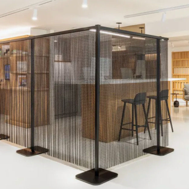 La cortina de cadena de aluminio se puede utilizar en espacios comerciales como restaurantes, bares y cafeterías.proporcionando una sensación de privacidad mientras se mantiene un ambiente abiertoAdemás, la pantalla de la cadena de aluminio se puede utilizar como elemento decorativo para mejorar el ambiente del espacio.