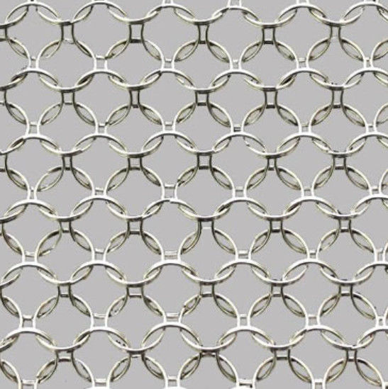 Otro gran uso para nuestra malla de anillos metálicos es como elemento decorativo en el diseño de interiores. La malla se puede utilizar para crear hermosas piezas de acento, como divisores de habitaciones o arte de pared.La textura y el brillo únicos de la malla la hacen una adición perfecta a cualquier espacio moderno o contemporáneo.